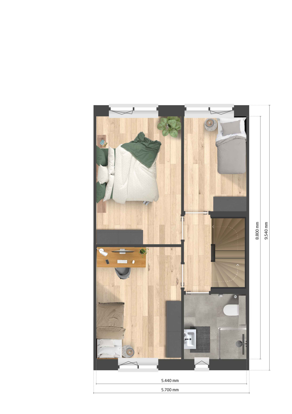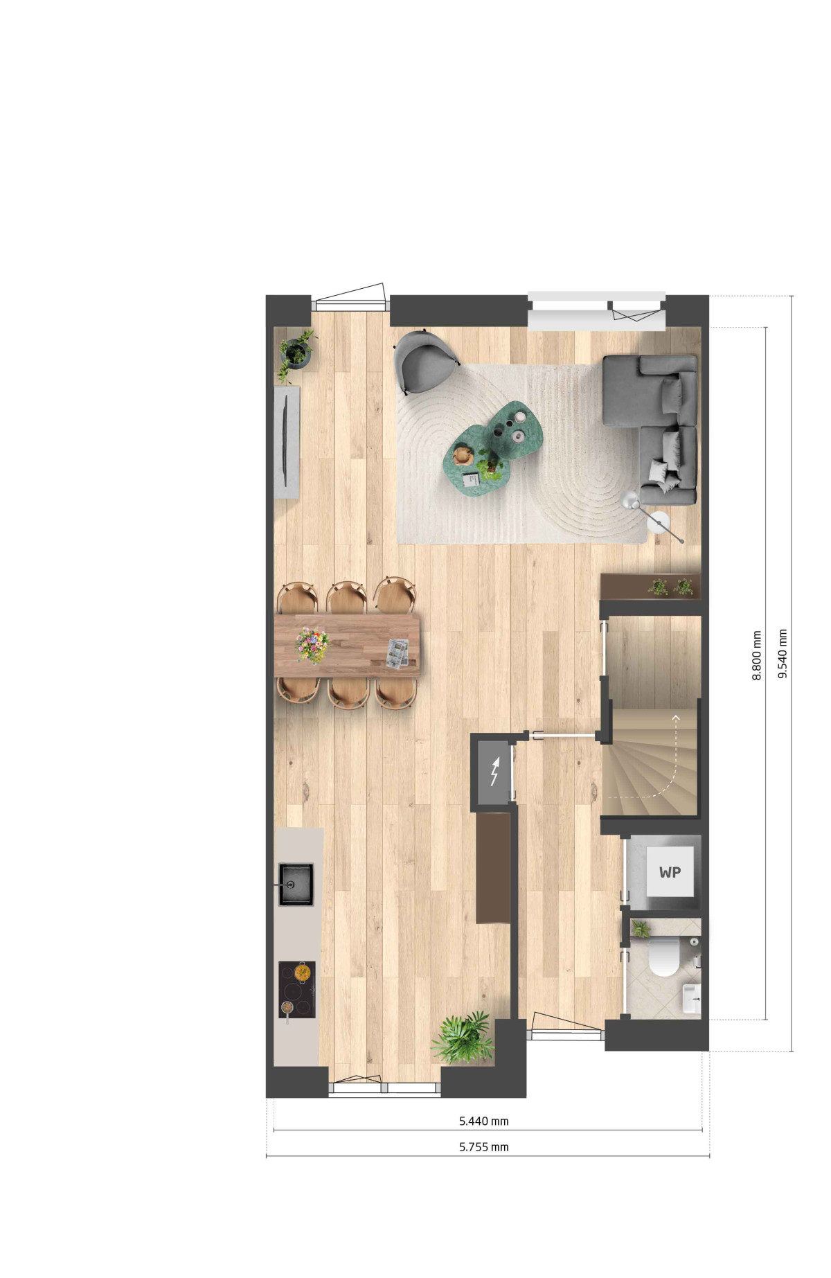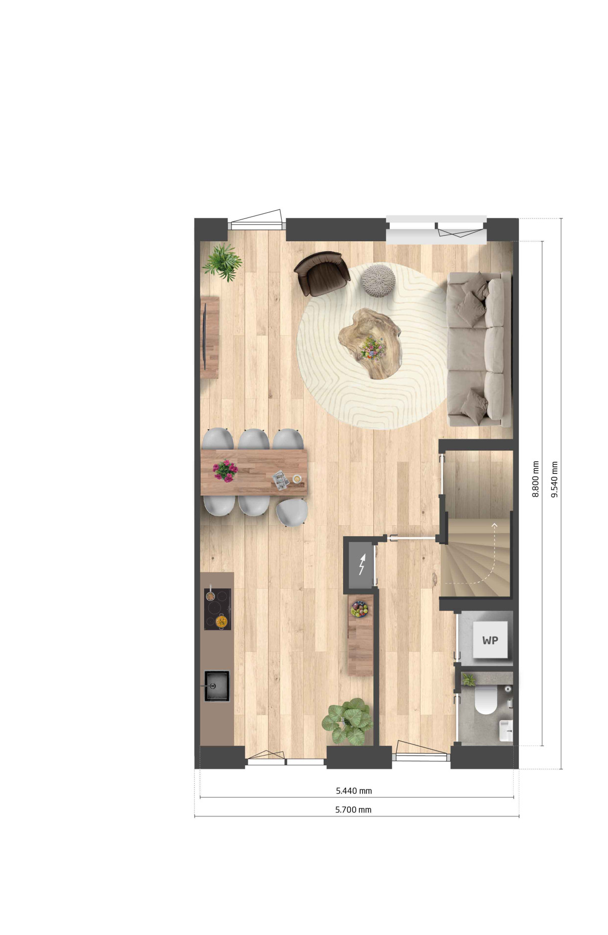 Woningmodel Sevenrijck is in de basis 5,70 meter breed en 9,54 meter diep. Aan de tuinzijde van de woning is ruimte voor een heerlijke zithoek en de straatzijde is de perfecte plek voor je nieuwe keuken. Kavel 75 heeft een accent van 60 centimeter in de voorgevel wat niet alleen zorgt voor extra ruimte, maar geeft de woning ook een stijlvolle uitstraling. Wil je meer ruimte voor bijvoorbeeld een extra grote zithoek? Kies dan voor de optie van 1,20 of 2,40 meter verlenging. Deze optie kun je verder uitbreiden door bijvoorbeeld te kiezen voor tuindeuren met zijlichten. Zo geniet je nog meer van je tuin. Heb je andere ideeën? Laat het ons weten!