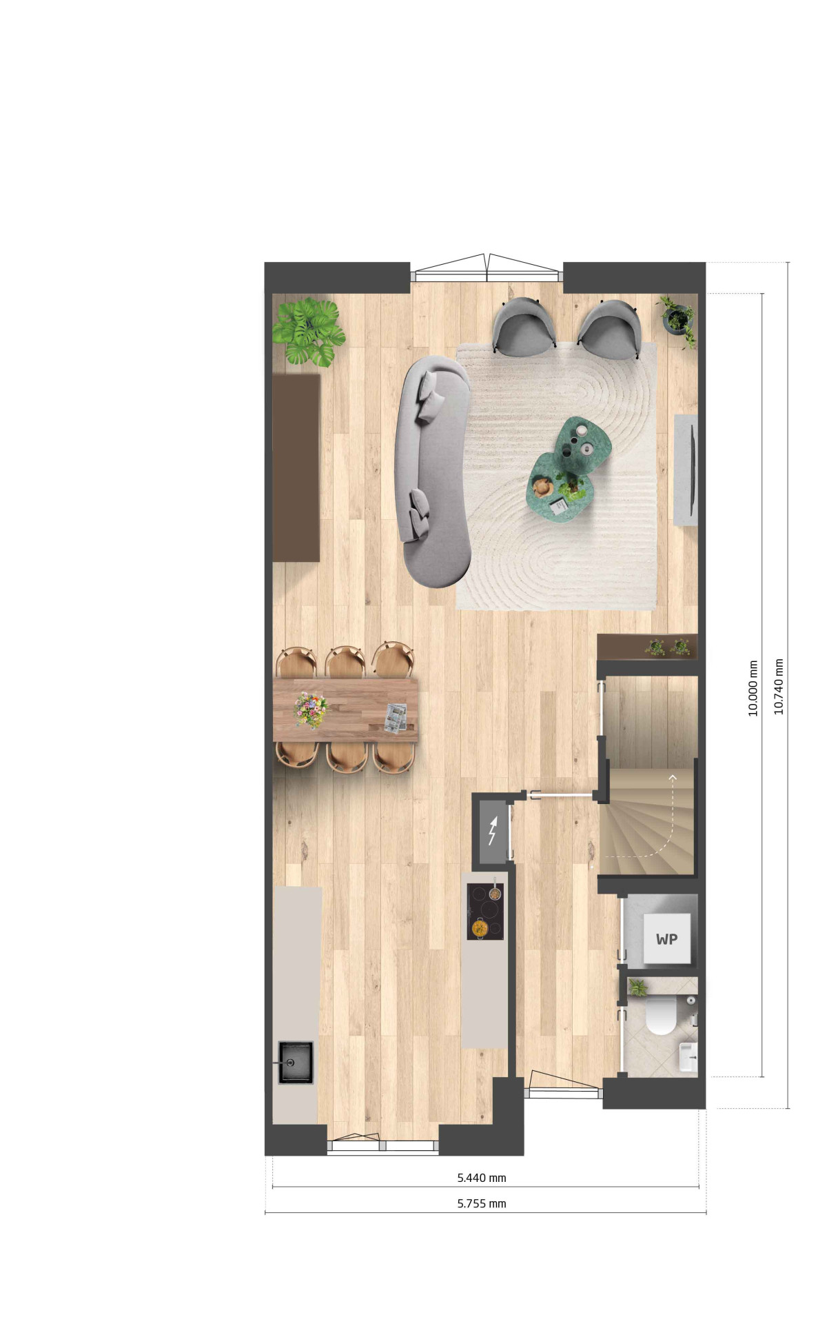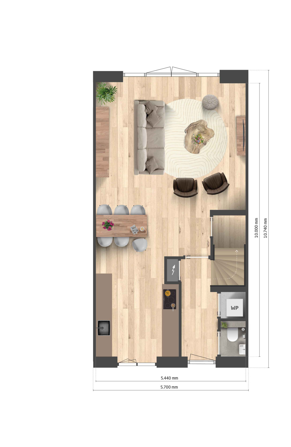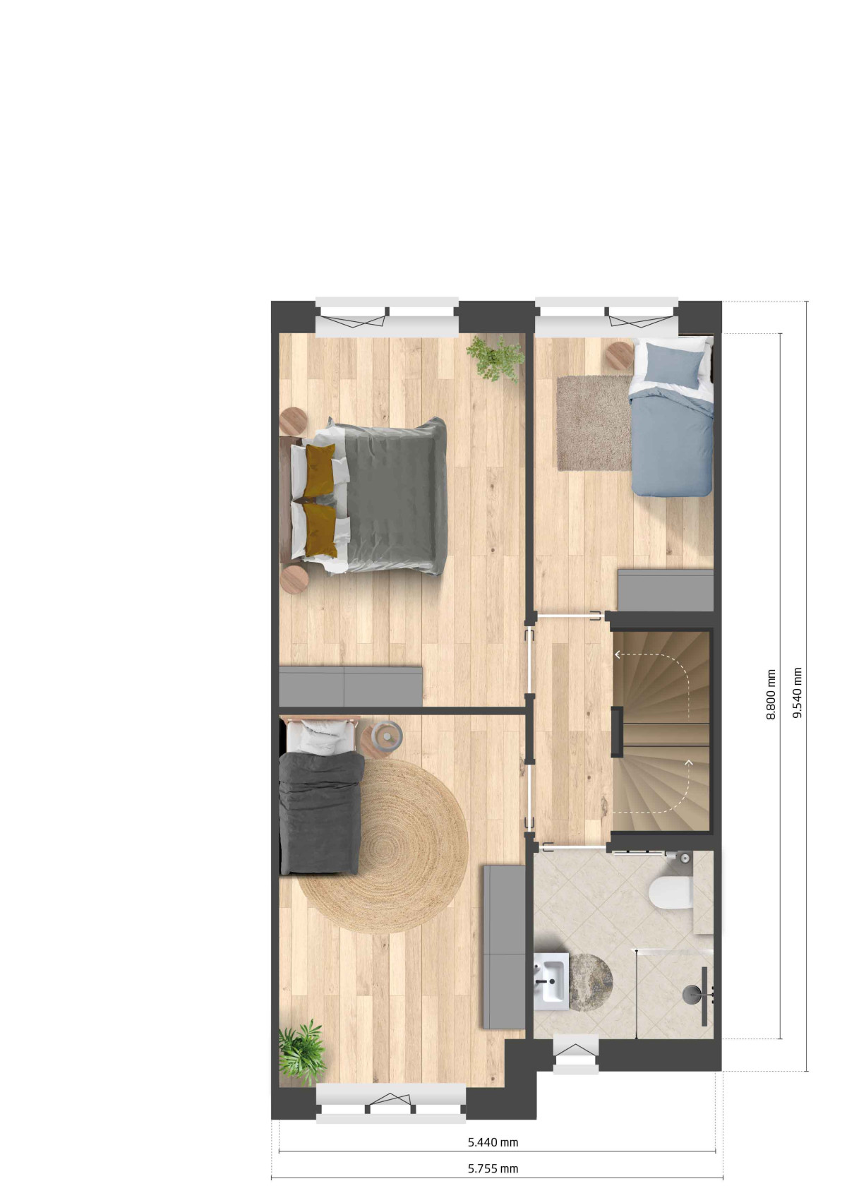 Woningmodel Sevenrijck is in de basis 5,70 meter breed en 9,54 meter diep. Aan de tuinzijde van de woning is ruimte voor een heerlijke zithoek en de straatzijde is de perfecte plek voor je nieuwe keuken. Kavel 75 heeft een accent van 60 centimeter in de voorgevel wat niet alleen zorgt voor extra ruimte, maar geeft de woning ook een stijlvolle uitstraling. Wil je meer ruimte voor bijvoorbeeld een extra grote zithoek? Kies dan voor de optie van 1,20 of 2,40 meter verlenging. Deze optie kun je verder uitbreiden door bijvoorbeeld te kiezen voor tuindeuren met zijlichten. Zo geniet je nog meer van je tuin. Heb je andere ideeën? Laat het ons weten!