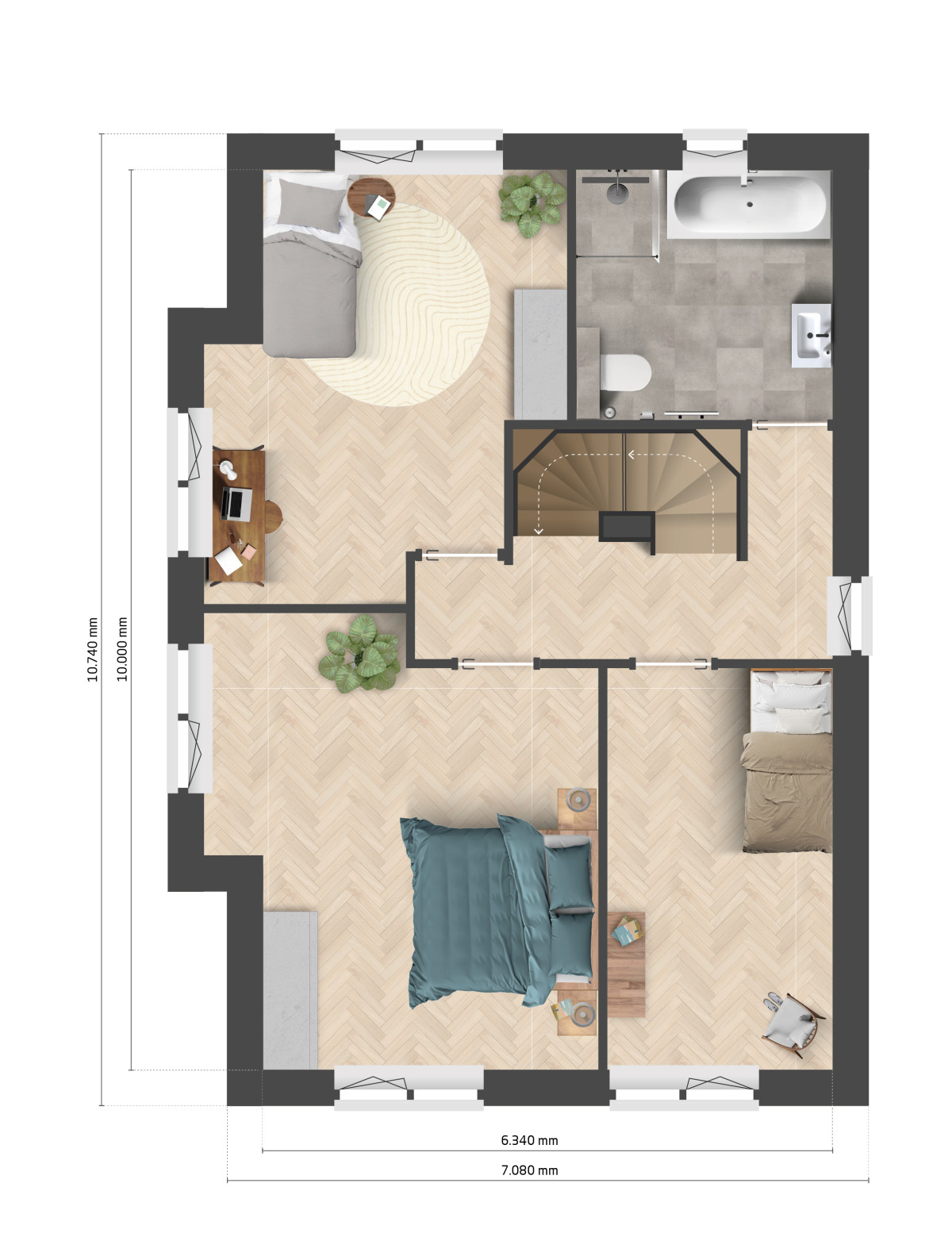 De eerste verdieping van deze woning heeft drie ruime slaapkamers en een badkamer met een douche, een ligbad, een wastafel en een tweede wandcloset. De Amice met accent krijgt door het accent een speelse indeling en extra ruimte. De zolder is een perfecte plek voor extra kamers, een speelruimte voor de kinderen of voor een handige werkplek. Hier is de aansluiting voor de wasmachine en de technische installaties staan hier ook. Voldoende mogelijkheden! Heb je eigen wensen? Geen probleem! Laat je verrassen door onze flexibiliteit en schroom niet om jouw eigen ideeën bij ons kenbaar te maken.
