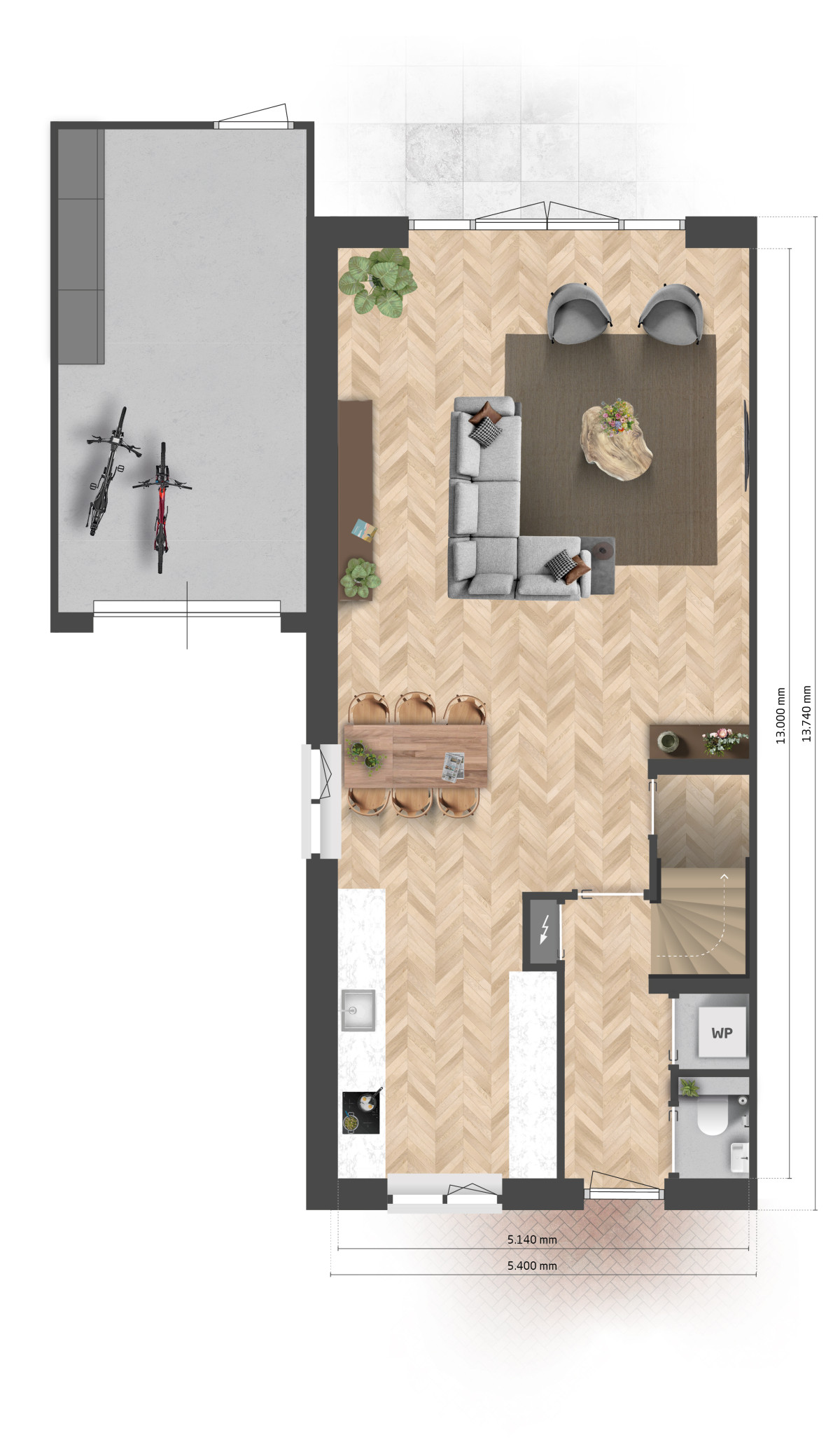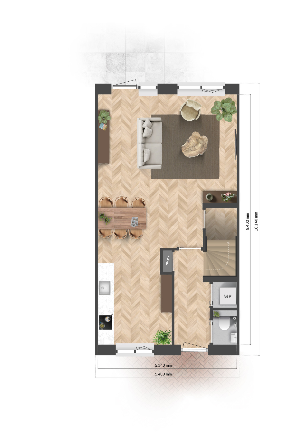 Woningmodel Kornuit is een energieneutrale woning met vele mogelijkheden. De hoekwoning (kavel 3) is in de basis 5,64 meter breed en 10,14 diep. De optionele aangebouwde berging is een handige extra ruimte voor je fietsen en tuingereedschap. De tussenwoningen en de hoekwoning (kavel 9) zijn standaard 5,40 meter breed en hebben een diepte van 10,14 meter. De woonkamer aan de tuinzijde is heerlijk ruim met plaats voor een gezellige zithoek. Jouw droomkeuken met grote eettafel past heel mooi aan de voorzijde. Optioneel is een verlenging van 1,20 of 2,40 meter mogelijk, wat zorgt voor een grotere woonkamer. Deze optie kan worden uitgebreid met bijvoorbeeld tuindeuren met zijlichten. Zo woon je precies zoals je wilt.