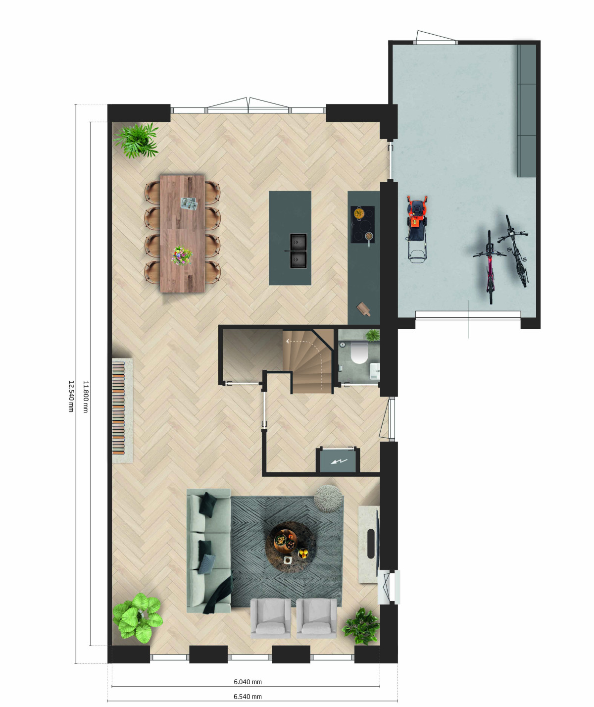 Woningmodel Laanzicht is een twee-onder-een-kapwoning met veel ruimte en comfort. Deze twee-onder-een-kapwoning is in de basis 6,54 meter breed en 10,14 meter diep. De accentwoning van het woningmodel Laanzicht (kavel 04 en 07) heeft een fraai accent van 60 centimeter aan de voorzijde van de woning wat zorgt voor extra ruimte op alle verdiepingen. De ruime en lichte woonkamer aan de voorzijde is de perfecte plek voor een gezellige zithoek. De tuinzijde van de woning is ideaal voor je toekomstige droomkeuken. Daarnaast heeft deze woning een aangebouwde, gemetselde berging, erg handig. Vanuit de keuken genieten van je tuin? Kies voor tuindeuren met zijlichten en haal buiten écht naar binnen. Wil je nog meer ruimte en een prachtige royale woonkeuken? Breid je woning dan uit met een verlenging van 1,20 of 2,40 meter. Zo ontstaat een royale, lichte leefkeuken met volop mogelijkheden. We denken graag met je mee over de invulling!