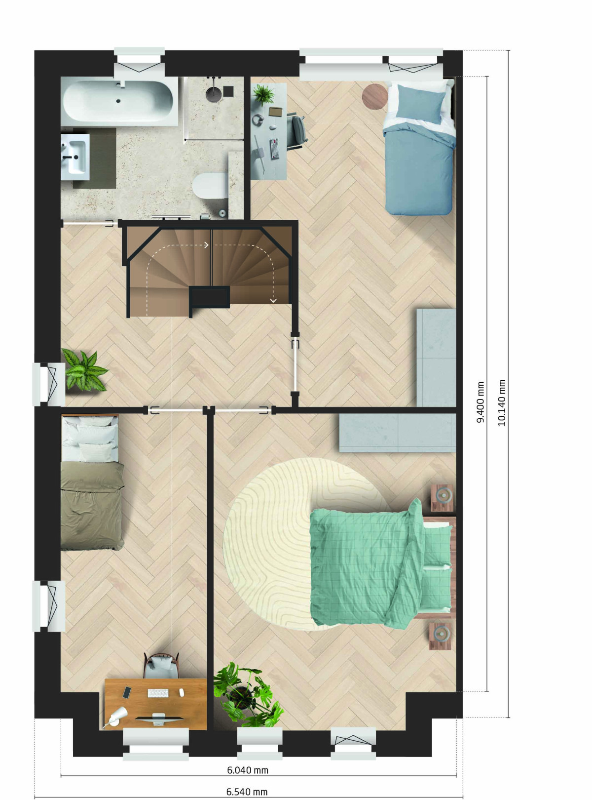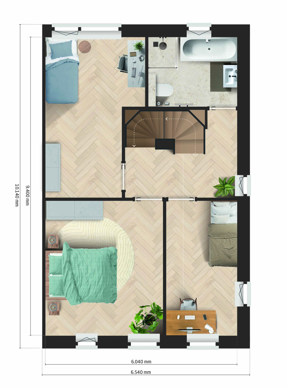De eerste verdieping van deze woning beschikt over drie slaapkamers en een badkamer met een ligbad, een douche, een wastafel en een tweede wandcloset. De zolder is een ideale plek voor een speelruimte voor de kinderen of een handige werkplek. Hier vind je ook de aansluiting voor de wasmachine en een aantal van de technische installaties. Bij de accentwoning van het woningmodel Laanzicht heb je door de dwarskap en twee ramen extra ruimte en veel lichtinval. Daarnaast is er bij Laanzicht accent voldoende plek voor een werkkamer, speelruimte of extra slaapkamers. Heb je eigen wensen? Geen probleem! Laat je verrassen door onze flexibiliteit en schroom niet om jouw eigen ideeën bij ons kenbaar te maken.