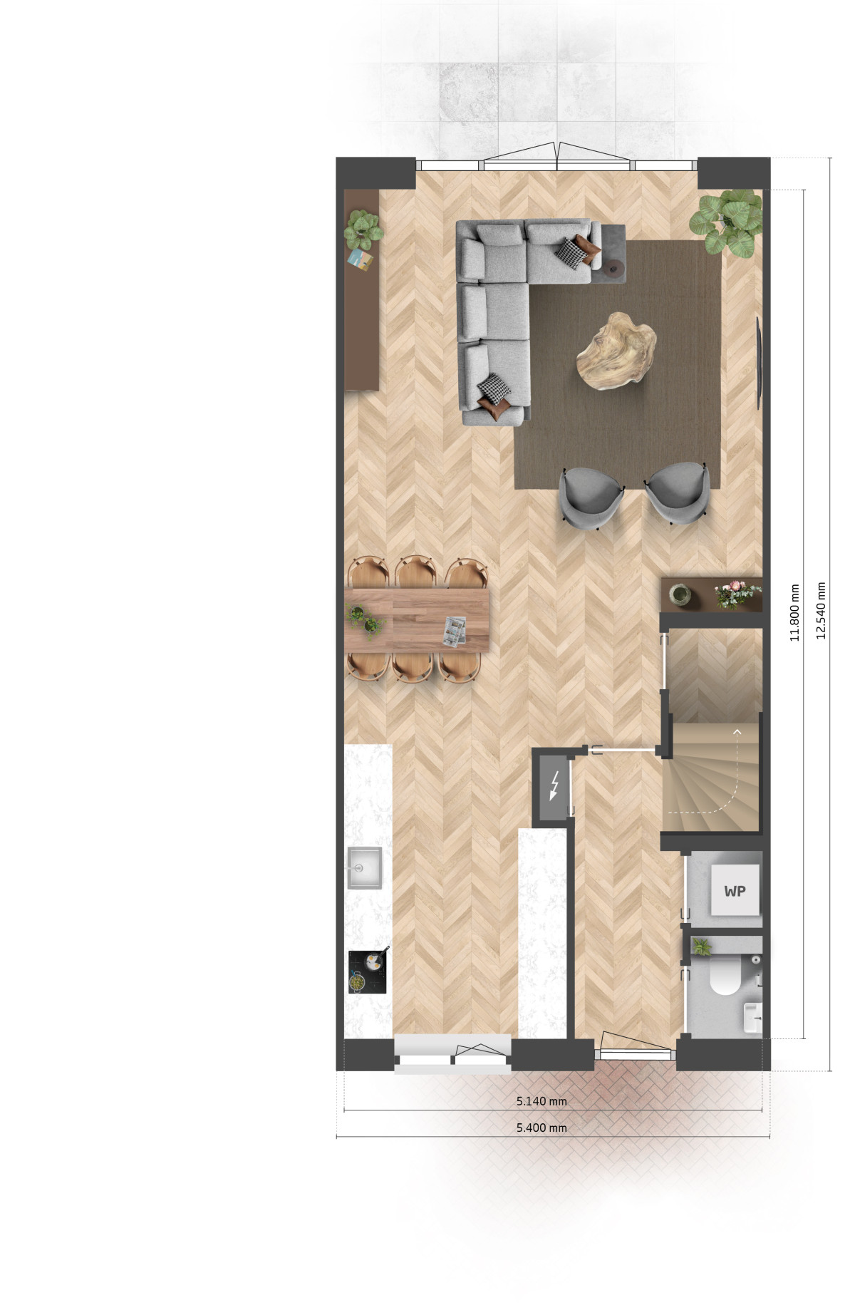 Woningmodel Kornuit is een energieneutrale woning met vele mogelijkheden. De hoekwoning (kavel 3) is in de basis 5,64 meter breed en 10,14 diep. De optionele aangebouwde berging is een handige extra ruimte voor je fietsen en tuingereedschap. De tussenwoningen en de hoekwoning (kavel 9) zijn standaard 5,40 meter breed en hebben een diepte van 10,14 meter. De woonkamer aan de tuinzijde is heerlijk ruim met plaats voor een gezellige zithoek. Jouw droomkeuken met grote eettafel past heel mooi aan de voorzijde. Optioneel is een verlenging van 1,20 of 2,40 meter mogelijk, wat zorgt voor een grotere woonkamer. Deze optie kan worden uitgebreid met bijvoorbeeld tuindeuren met zijlichten. Zo woon je precies zoals je wilt.