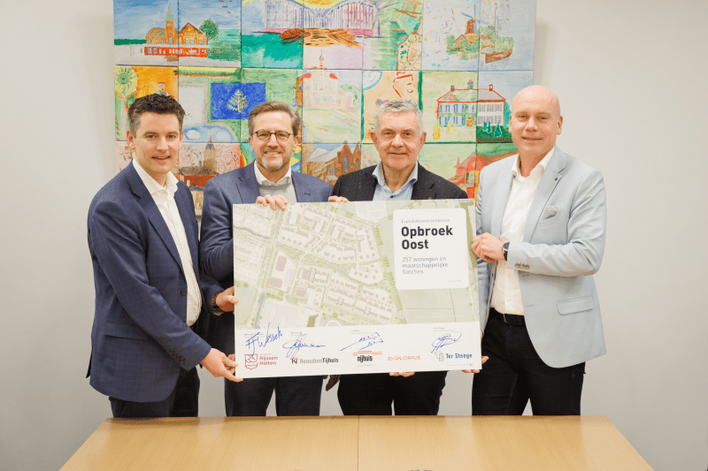 Rijssen zet een belangrijke stap richting nieuwe, betaalbare en duurzame woonruimte. Op 29 januari ondertekenden de gemeente Rijssen-Holten en de lokale ontwikkel- en bouwbedrijven Roosdom Tijhuis, Ter Steege Bouw Vastgoed en Nijhuis/Explorius de overeenkomst voor de realisatie van de laatste fase van het Opbroek. Hiermee krijgt de gebiedsontwikkeling een stevige impuls en ontstaat ruimte voor bijna 260 nieuwe woningen.